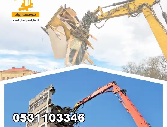 - هدم المباني: منازل، فلل، مباني تجارية، مصانع، وأسوار.